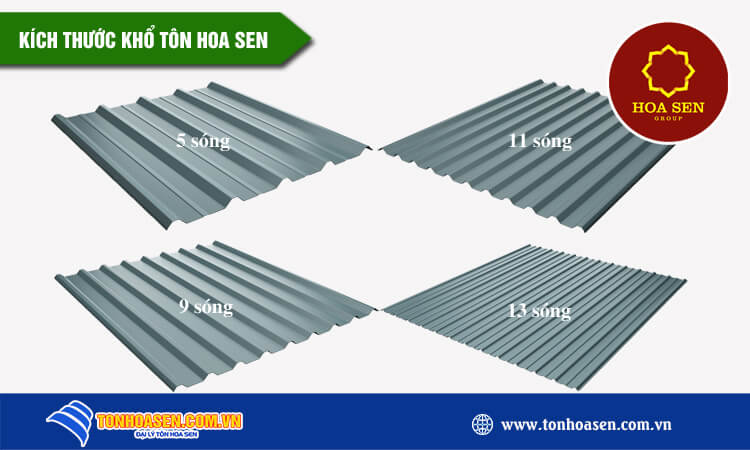 Mỗi loại khổ tôn Hoa Sen có ưu điểm riêng: 5 sóng nổi bật về độ bền và thoát nước nhanh, 9 sóng cân bằng giữa chắc chắn và thẩm mỹ, 11 sóng mang lại vẻ đẹp hiện đại, còn 13 sóng gọn nhẹ, tinh tế, dễ thi công. Do đó, tùy nhu cầu sử dụng và phong cách công trình, khách hàng có thể lựa chọn quy cách sóng phù hợp để vừa đảm bảo độ bền vừa nâng cao tính thẩm mỹ tổng thể.