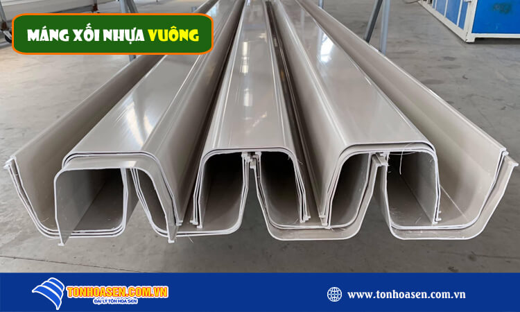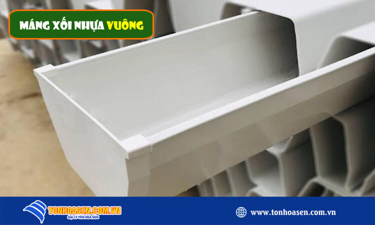 - Thân máng xối dạng vuông, làm từ nhựa PVC hoặc composite, có khả năng chịu lực và chịu nhiệt tốt.